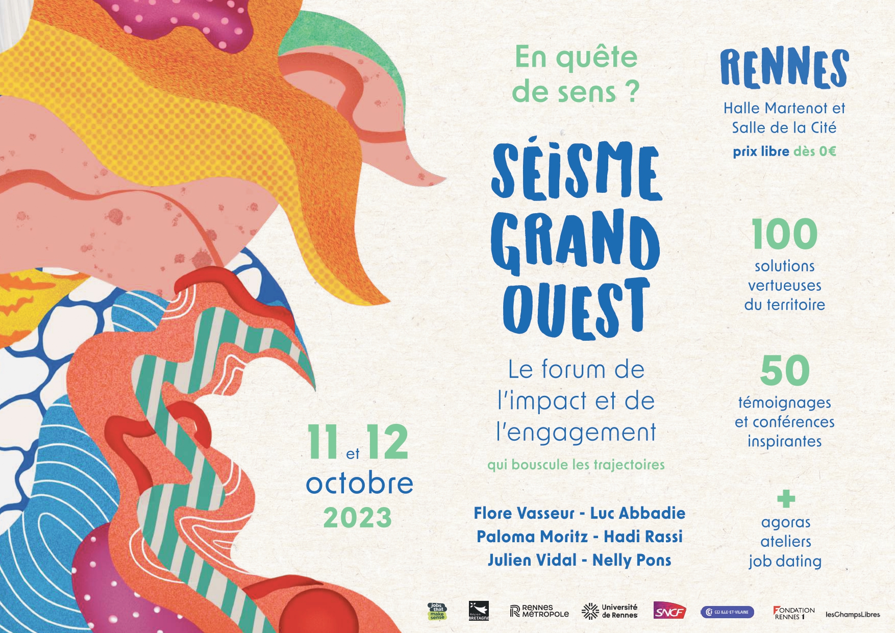 Si vous êtes sensibles aux transitions écologiques et sociales le Forum SEISME devrait vous intéresser. Vous pourrez y retrouver des tables rondes, des agoras ou encore des stands tenus par des structures actrices sur le territoire. Le Temps du Regard sera présente le mercredi 11 octobre et le jeudi 12 octobre sous la halle Martenot (Place des Lices à Rennes) afin de présenter son engagement sur le territoire de Rennes Métropole.